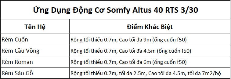 Động Cơ Rèm Somfy Altus 40 RTS 3/30 có độ rộng tối thiểu 0.7m, Cao tối đa 9m (ống cuốn f50)
