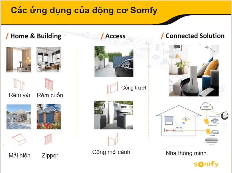 Các ứng dụng của động cơ Somfy.